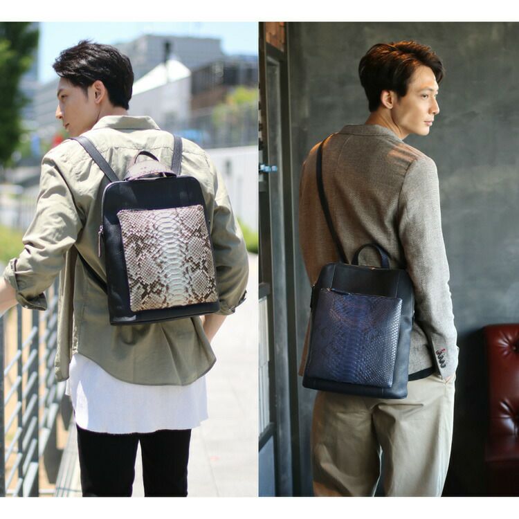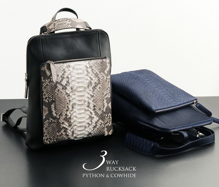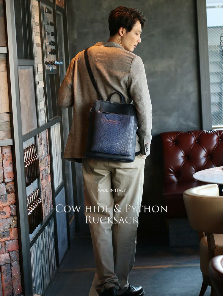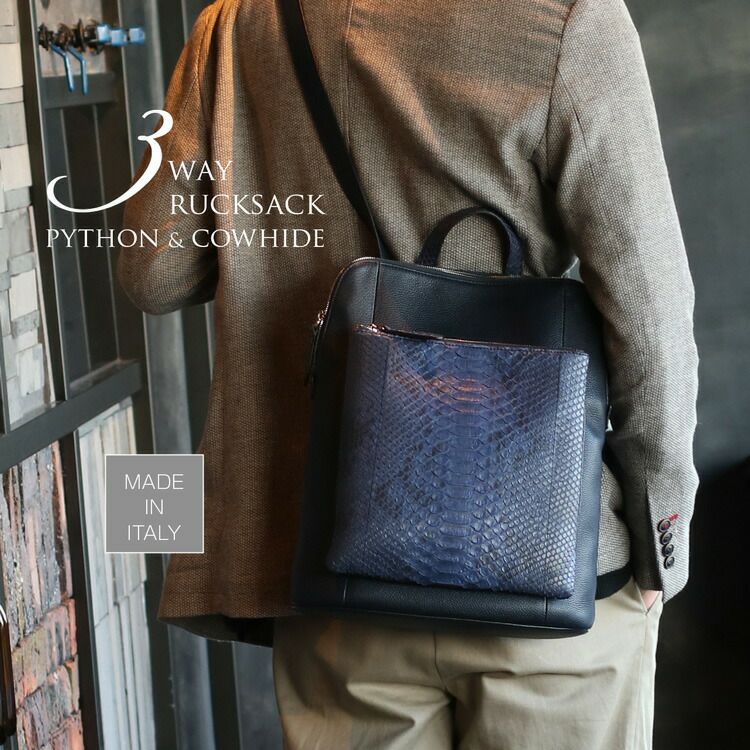 | 商品名:パイソン & 牛革 3WAY リュックサック イタリア製 メンズ |