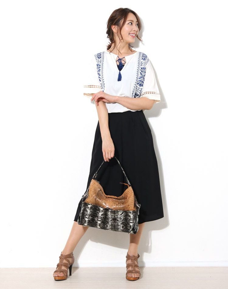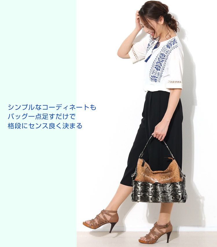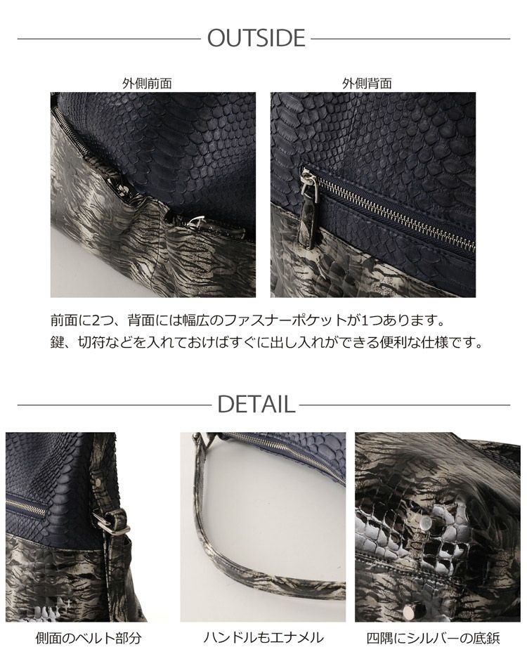 2種類の素材を使い分けたコンビネーションデザインのバッグです。