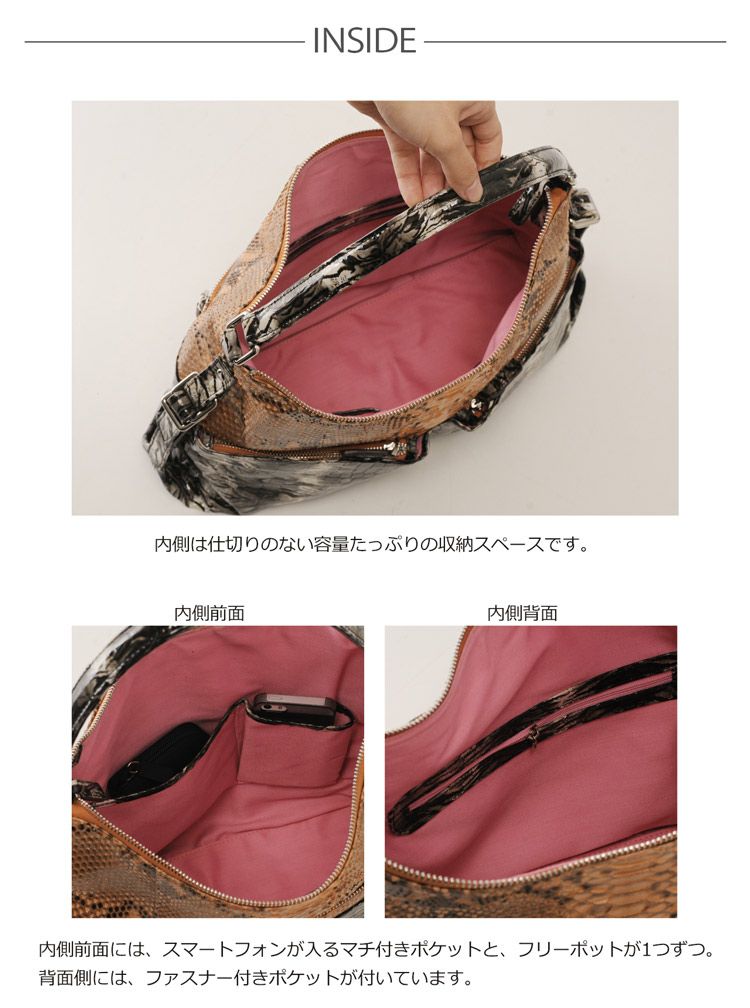 | 素材 | 表側:パイソン、牛革/内装:生地、一部本革 |