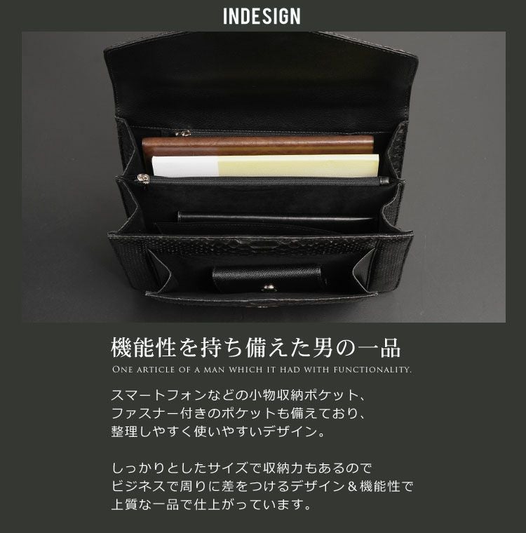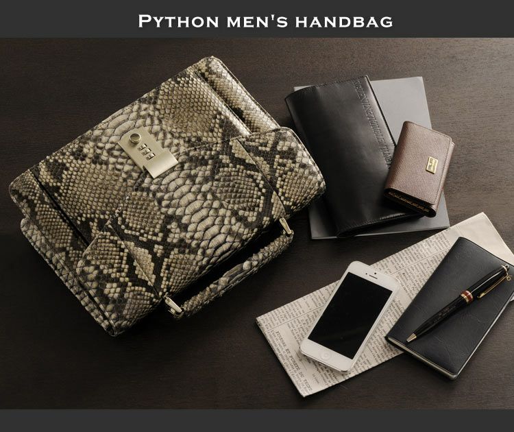 ビジネスシーンに極上のインパクトを残すパイソンレザーのメンズハンドバッグ