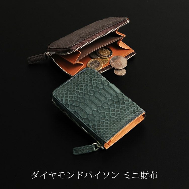 天然皮革 エキゾチックレザー ダイヤモンドパイソン ミニ財布 メンズ 小銭入れ L字ファスナー ヘビ革 パイソン柄 蛇革 軽量 サイフ 誕生日 父 プレゼント 父 普段使い パスケース 金運