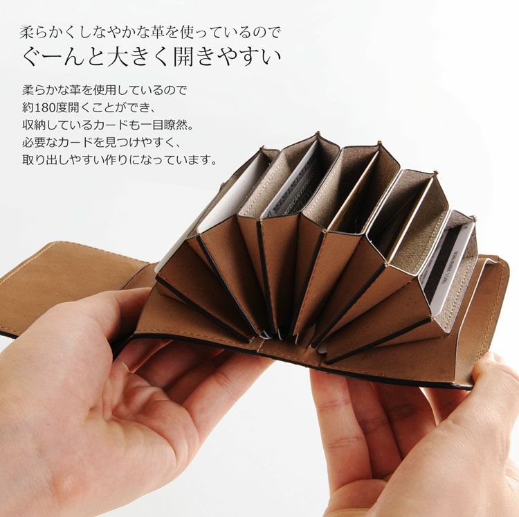 収納しているカードをひと目で確認でき、出し入れもらくらく行える使いやすい作り。