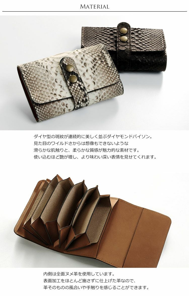 | 素材 | 表側:ダイヤモンドパイソン(本革) 内装:ヌメ革 |