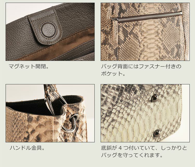 | 素材 | 表側:パイソン(本革) /内装:牛革、生地 |
