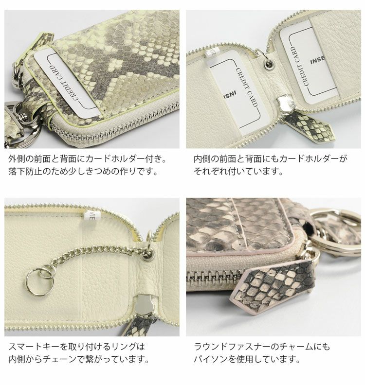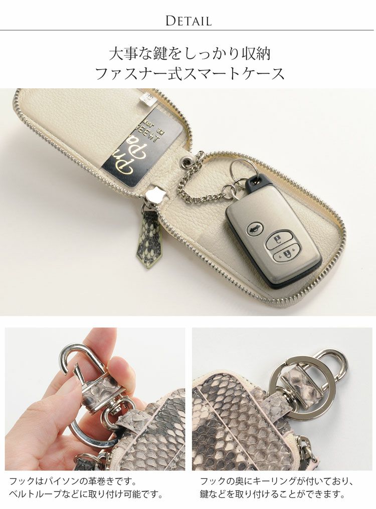 ラウンドファスナーで大事な鍵をしっかり収納できるスマートキーケース。