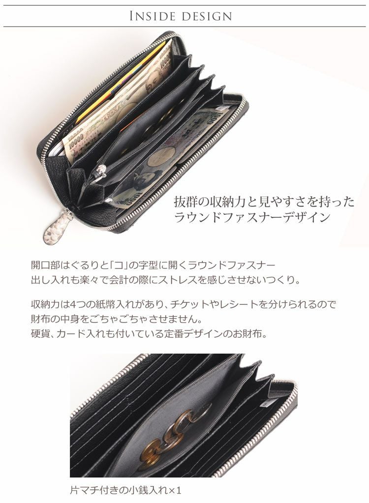 ラウンドファスナー式で大きく開くので中の確認がしやすく、お会計もらくらく行えます。