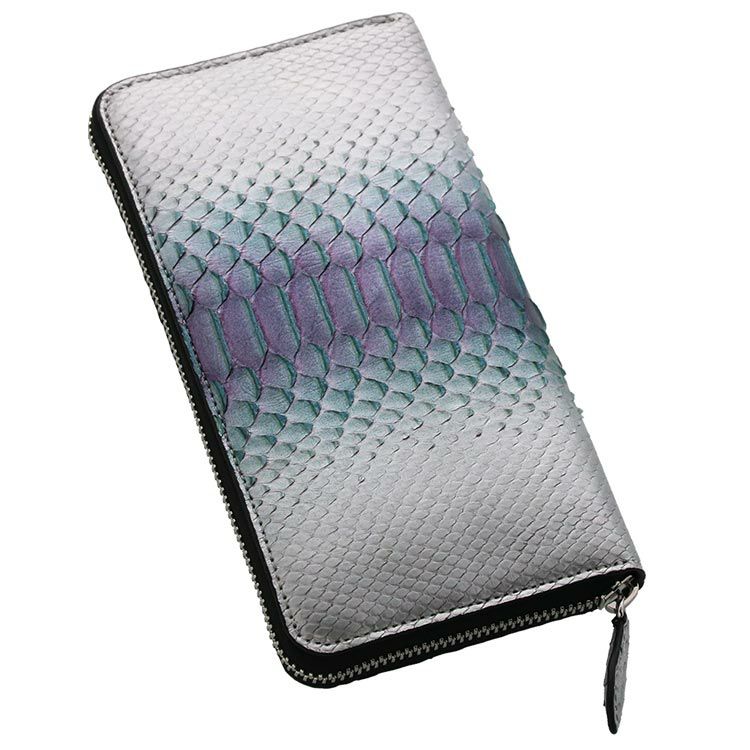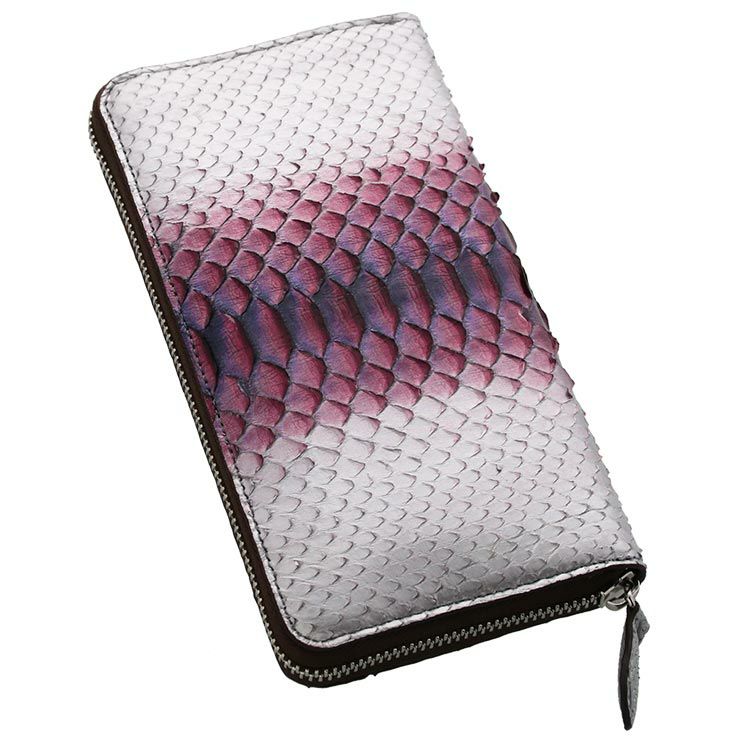 まるでアートのような美しい染色を施したパイソンのラウンドファスナー長財布。