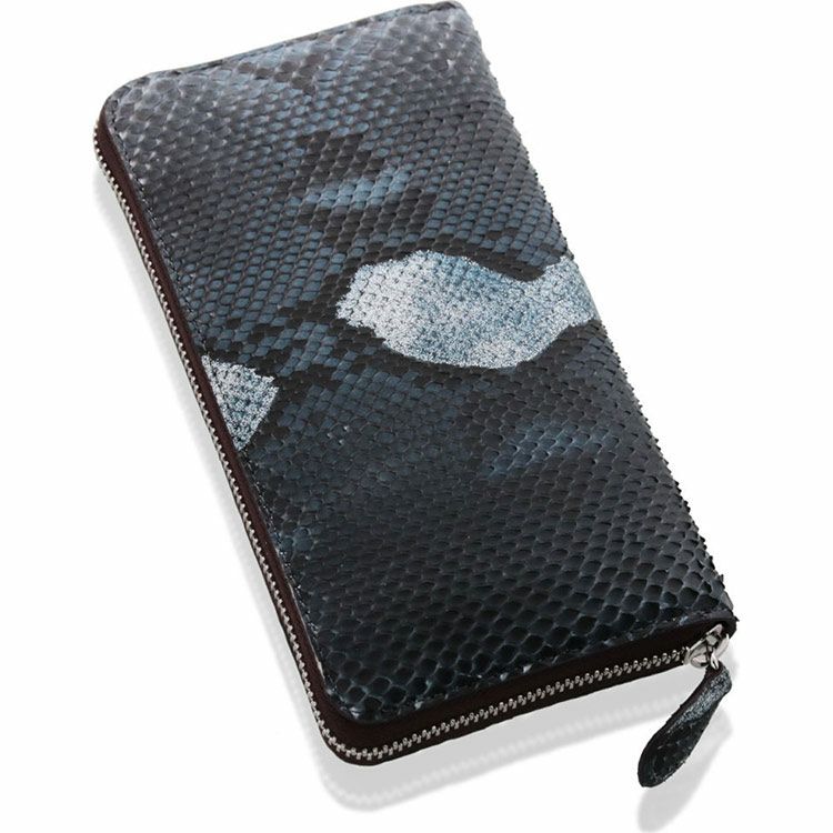まるでアートのような美しい染色を施したパイソンのラウンドファスナー長財布。
