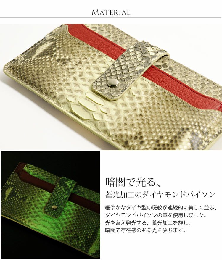 暗闇で光るダイヤモンドパイソンと牛革を使用した多機能ケース。