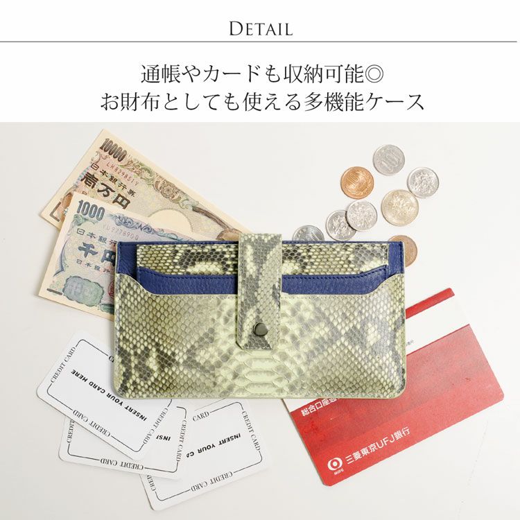 天然皮革 エキゾチックレザー マルチケース 通帳ケース付き ダイヤモンドパイソン 牛革 本革 蓄光 暗闇で光る/レディース/カード9枚収納/スマホがる 女性 プレゼント パイソン柄 金運 ギフト 春財布