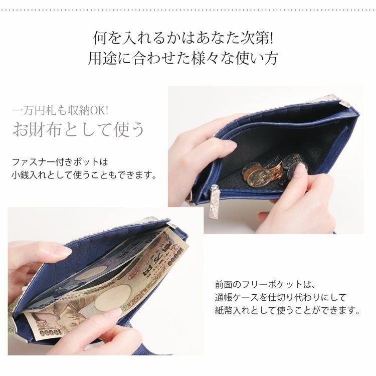 お財布、ミニバッグ、トラベルケースなど、目的に合わせて様々な使い方が可能。