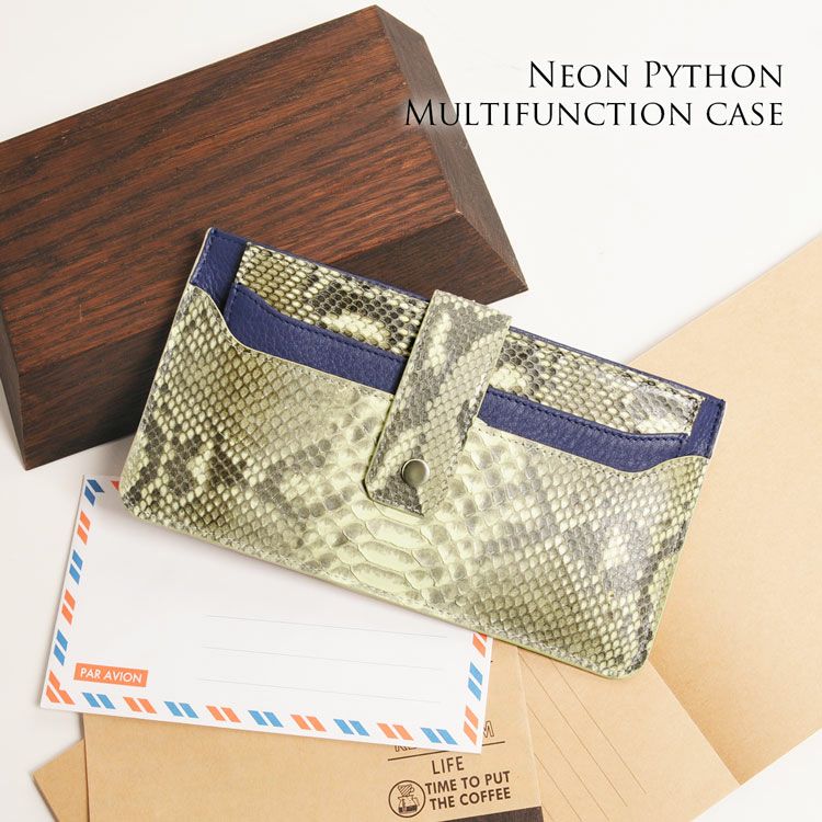 | 商品名:蓄光 ネオンパイソン 多機能ケース 通帳ケース付き バイカラー レディース |