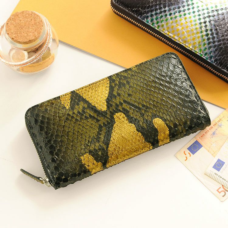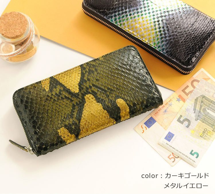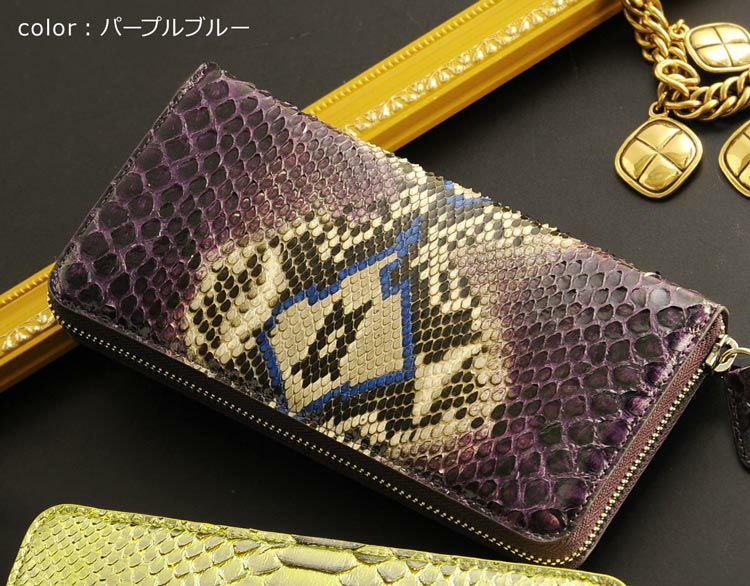 スペイン 染め ダイヤモンド パイソン ラウンド ファスナー 長財布 レディース 4FA