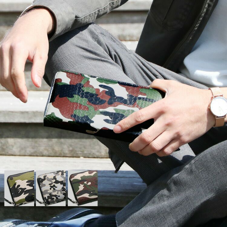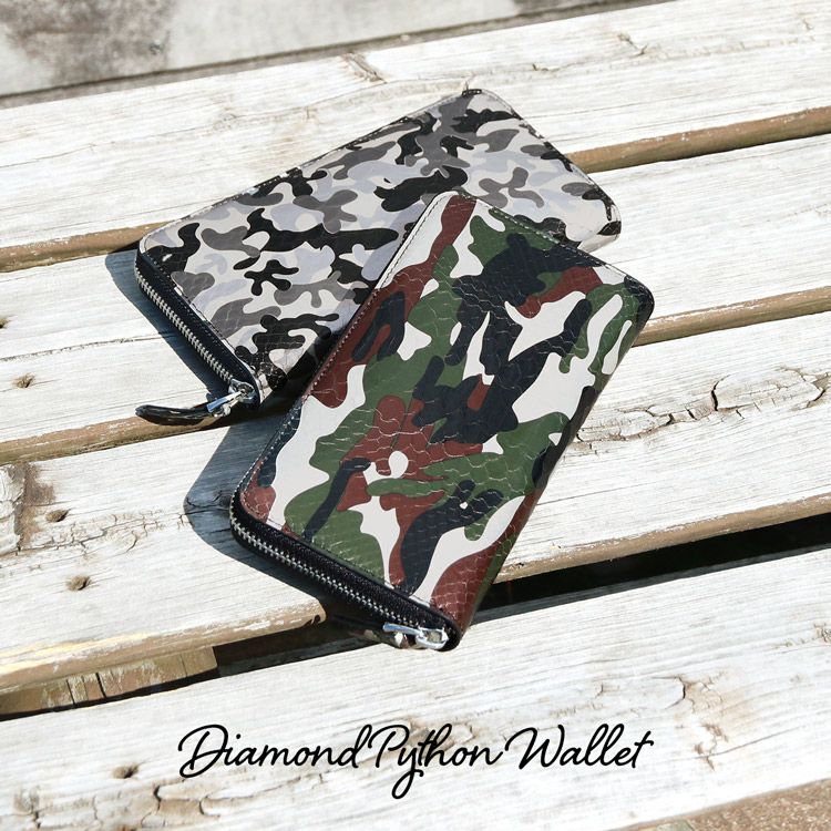 | 商品名:ダイヤモンド パイソン 長財布 ラウンドファスナー 迷彩柄 カモフラ メンズ カモフラカーキ/カモフラブラウン/カモフラグレー |