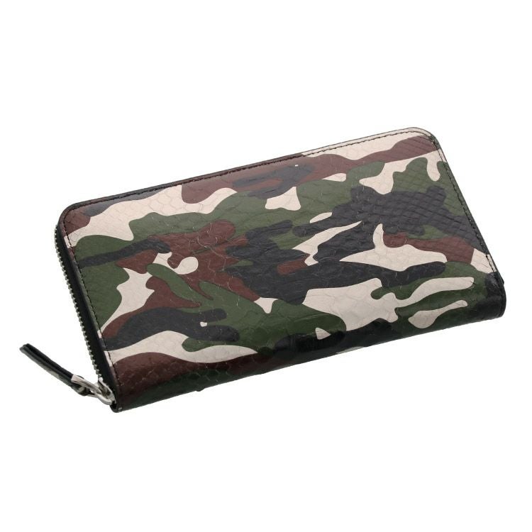 ダイヤモンドパイソンをハイファッションの流行でもあるカモフラージュ(迷彩)柄で仕立てたロングウォレットです。
