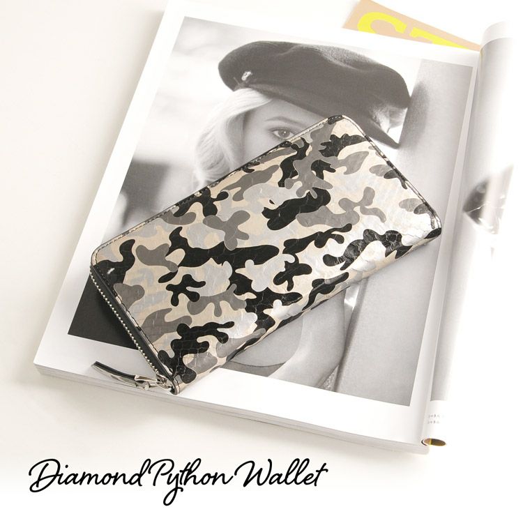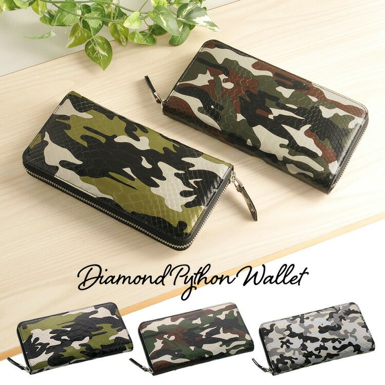 | 商品名:ダイヤモンド パイソン 長財布 ラウンドファスナー 迷彩柄 カモフラ レディース カモフラカーキ/カモフラブラウン/カモフラグレー |