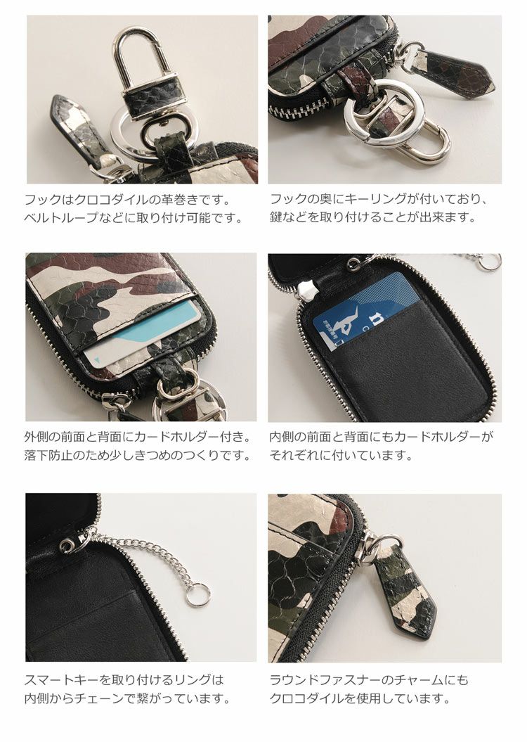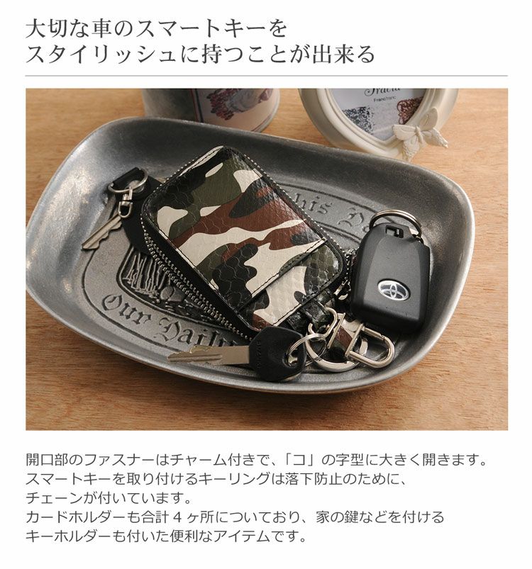 個性的なカモフラ(迷彩)柄のパイソンレザー使用のスマートキーケース。