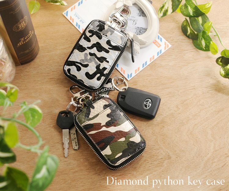 ダイヤモンド パイソン レザー スマート キーケース カモフラ 迷彩柄【ネコポスで送料無料】 4FA
