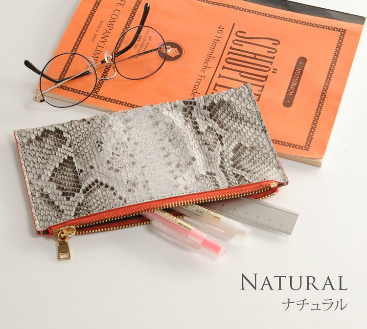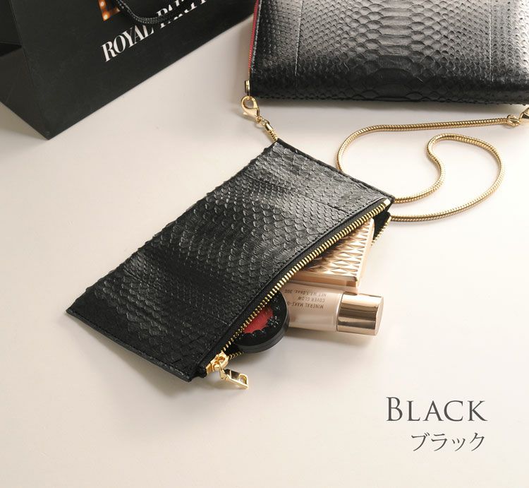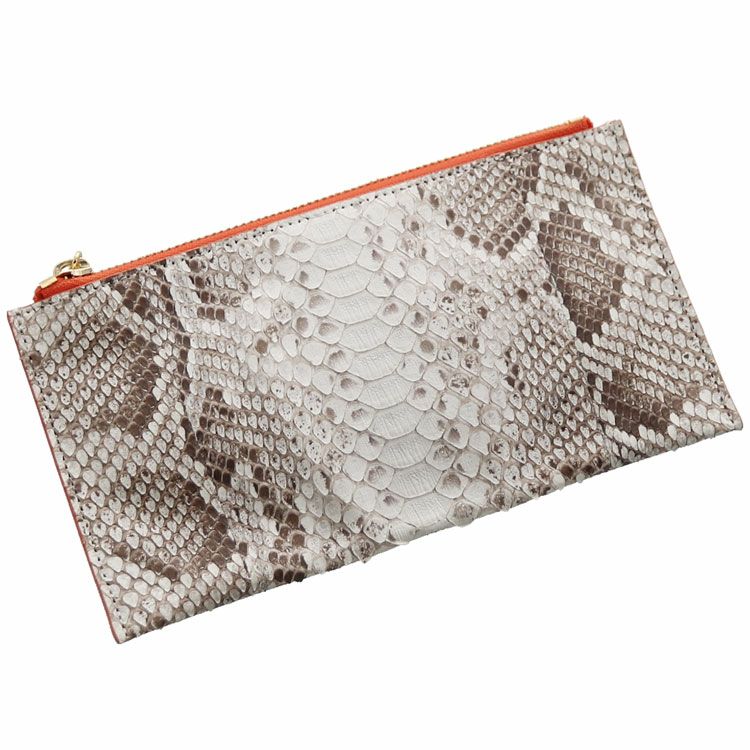 | 商品名:ダイヤモンド パイソン & ゴート レザー 薄型ポーチ 【ネコポスで送料無料】 |
