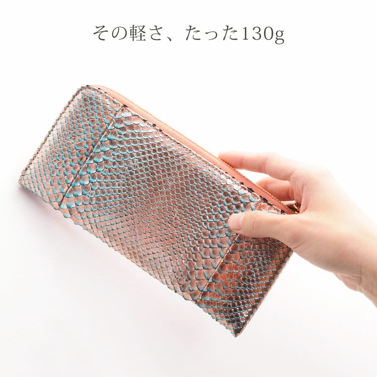キーワード:わずか130gの軽さで使いやすい長財布 ダイヤモンドパイソンの革をスペインでアートのように美しく染めました プレゼント リアルレザー ウォレット 母 女性 ギフト 金運 ギフト わずか130gの軽さで使いやすいパイソンL字長財布 金運