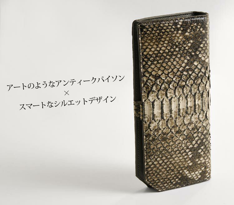 アンティーク加工で大人の色気を持った、ダイヤモンドパイソン本革長財布。