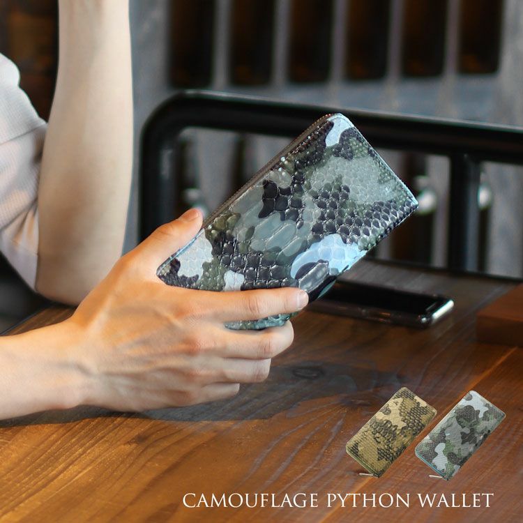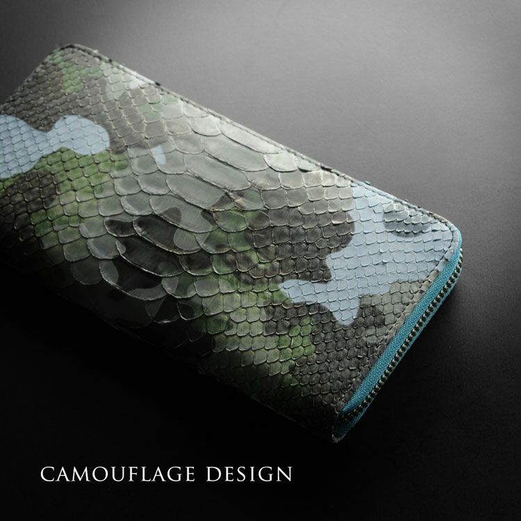 | 商品名:ダイヤモンド パイソン 長財布 メンズ ラウンド ファスナー 日本製 迷彩 カモフラ 柄 |