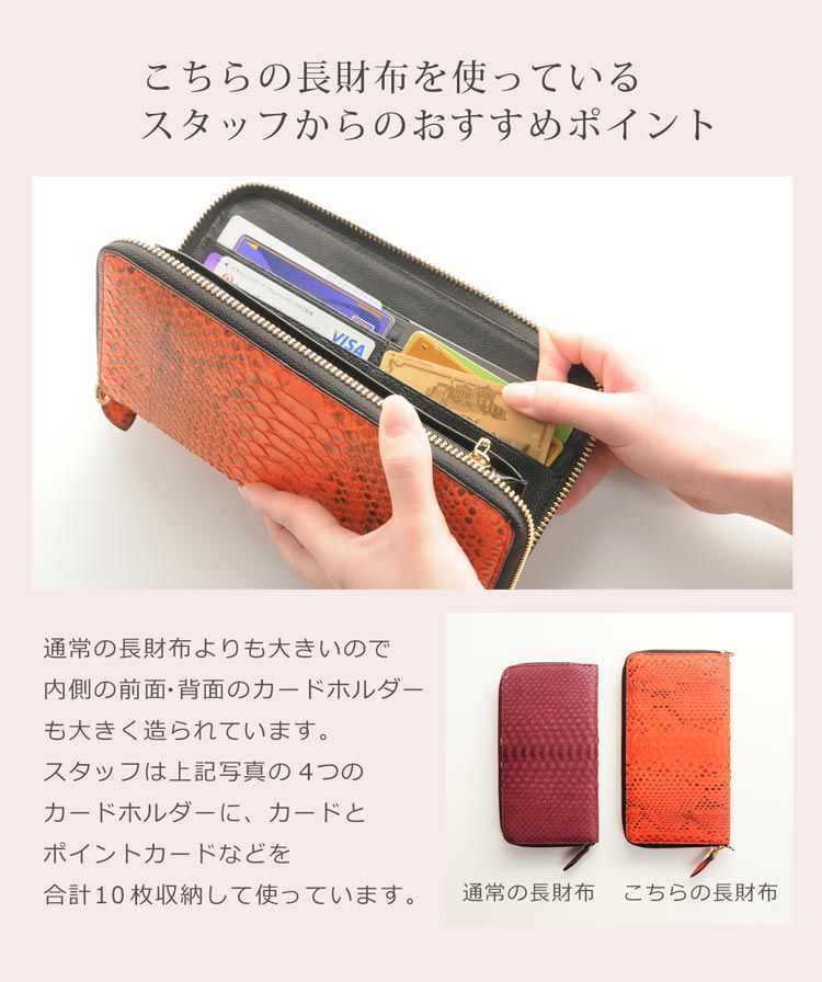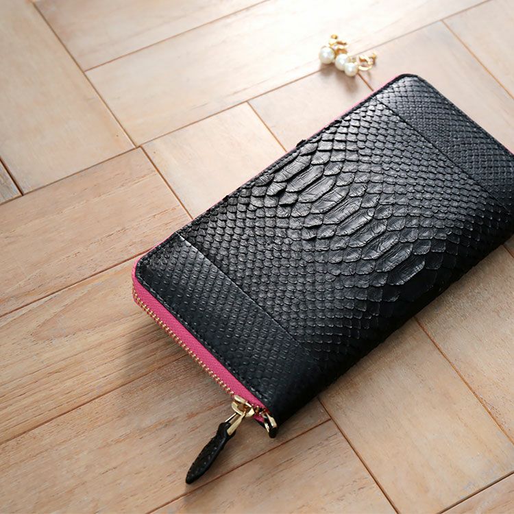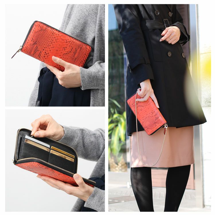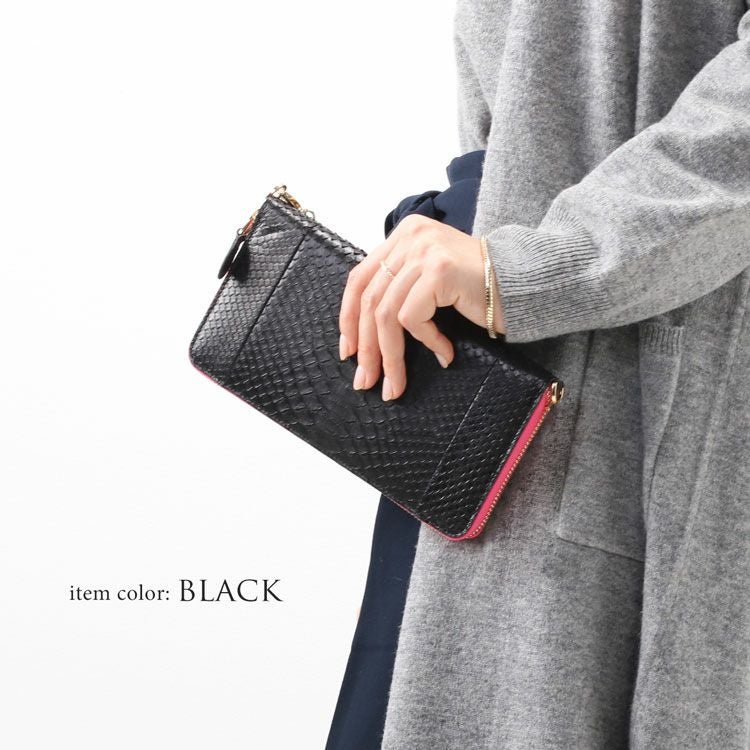 財布はダイヤモンドパイソンの革を使用し、フェミニンな印象。