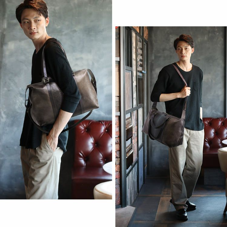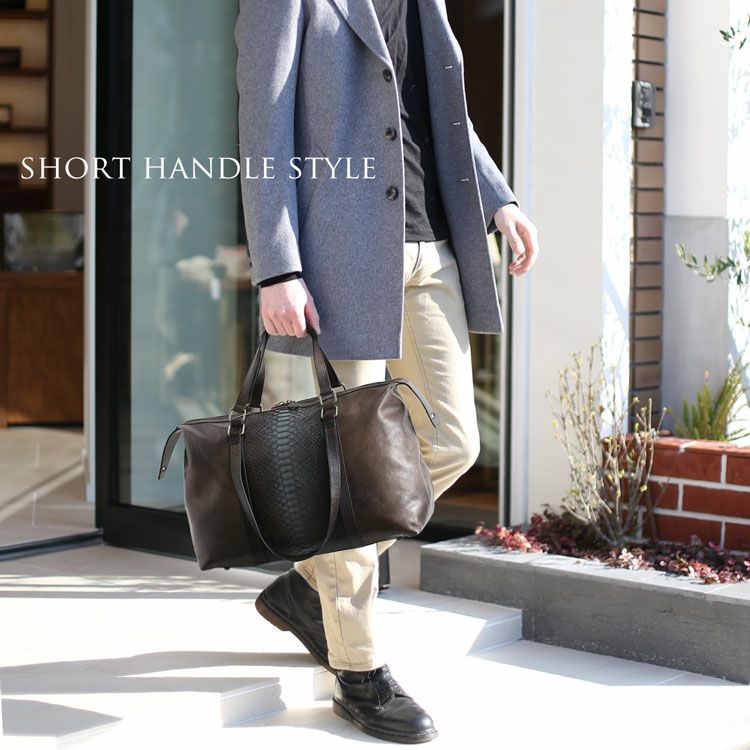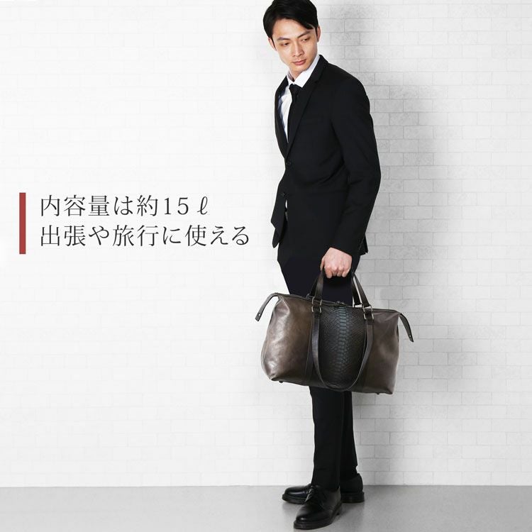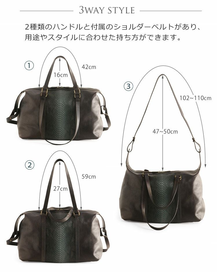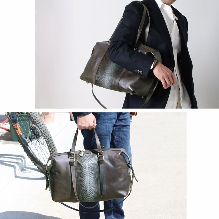 アンティーク感が魅力的なパイソンと牛革のおしゃれでかっこいいボストンバッグです。
