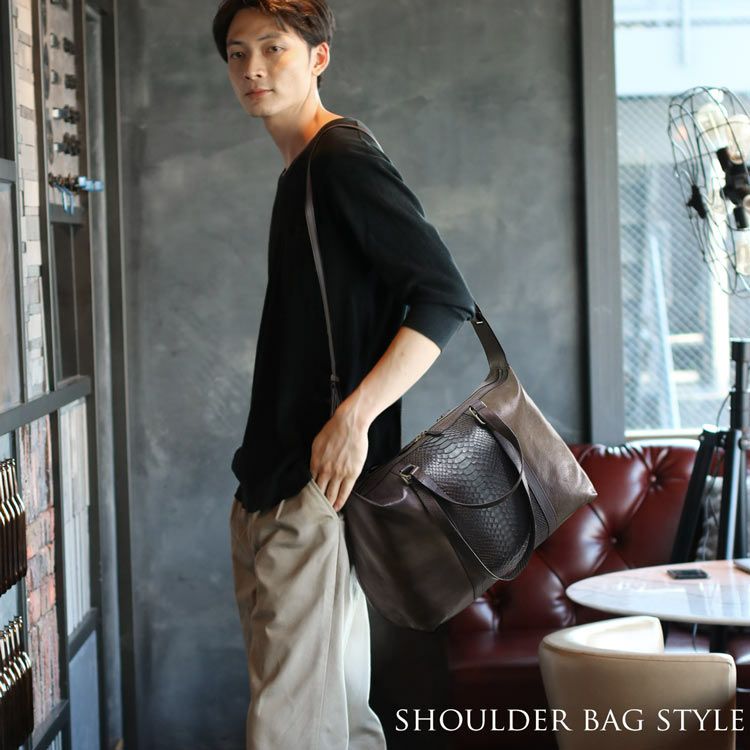 パイソンレザー(蛇革)は柔らかで軽いのが魅力で鞄の素材としてはとても優秀な爬虫類の本皮です。ヘビ柄が独特な模様を描くダイヤモンドパイソンや、世界的にも流通の多いモラレスパイソン、ヤスリヘビやウォーターパイソン、スネークなど様々な種類のヘビ革があり、その存在感が人気のエキゾチックレザーです。男性女性問わず根強いファンが多くシンプルなスタイルにも一つパイソンバッグを加えるだけでパッと目を惹くコーディネートが完成します。デザイン性の高いアイテムも多いため、オシャレにこだわりのある方や人とは違うファッションを楽しみたい本物志向の方にも選ばれています。また薄手で軽量にもかかわらず丈夫で、普段どおりに使用していればウロコが剥がれたりすることも無く長く使えるへび革なので、経年変化(エイジング)を楽しみながら愛着の湧くアイテムへと育っていくのもリアルレザーならではの醍醐味の一つ。世代を問わず愛される蛇革のかばんを是非ご堪能いただければと思います。