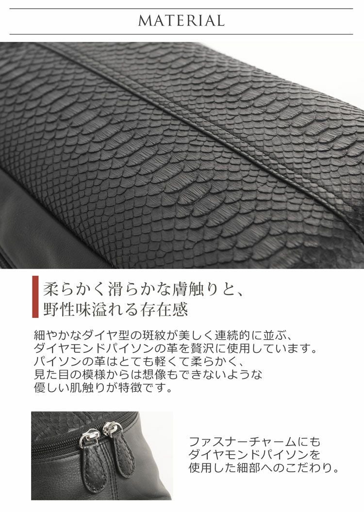 | 素材 | 表側:ダイヤモンドパイソン、牛革(本革) 内装:生地 |