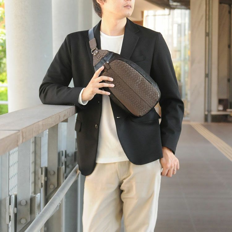天然皮革 エキゾチックレザー ボディバッグ メンズ 本革 ダイヤモンド パイソン ショルダーバッグ 蛇革 蛇 革 ヘビ革 ヘビ へび革 へび プレゼント ギフト 本革 レザー ギフト mensbag