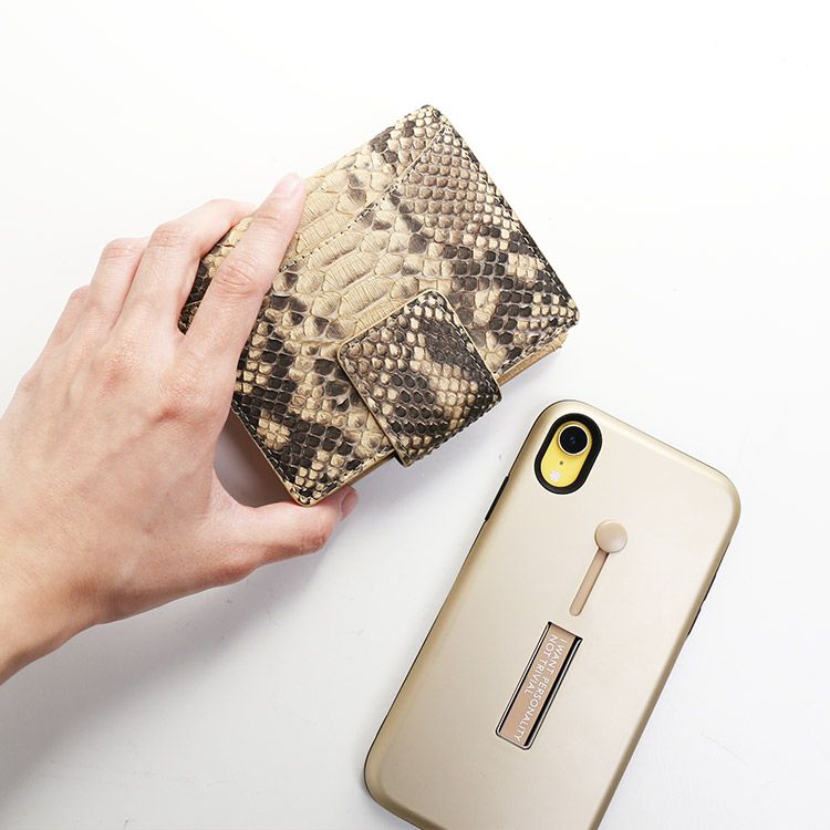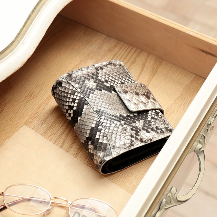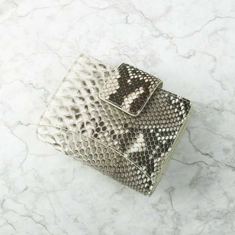 必要なものをコンパクトに持ち運べる、ダイヤモンドパイソンの折り財布です。
