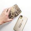 連続的に並ぶ鱗模様がオシャレなダイヤモンドパイソンの革を使用しています。