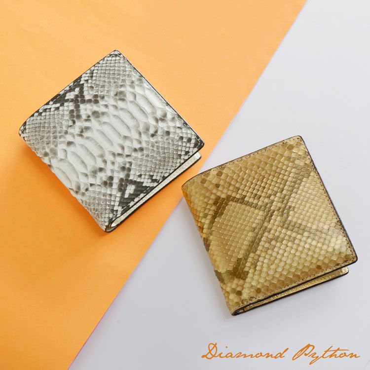 2. パイソン コンパクト 財布 レディース 本革 ダイヤモンドパイソン 二つ折り財布 レザー 折財布 4FA【ネコポスで送料無料】