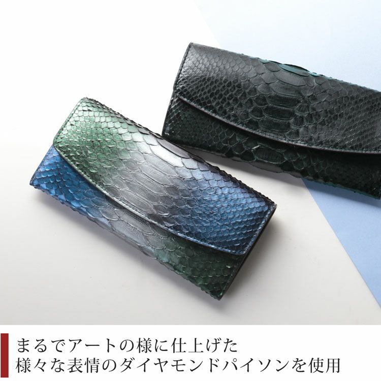 2. ダイヤモンドパイソン 長財布 レディース 薄型 かぶせ 【訳あり】 4FC【ネコポスで送料無料】