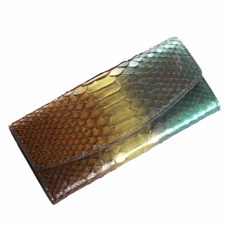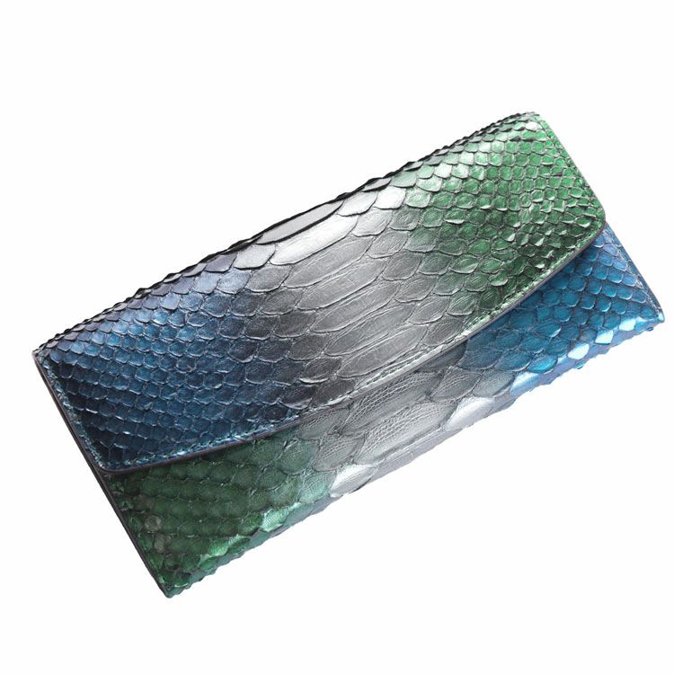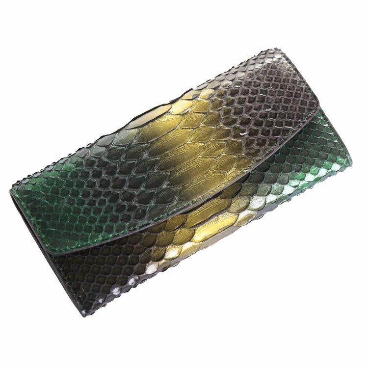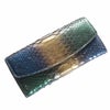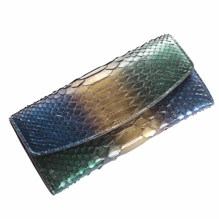 天然皮革 エキゾチックレザー ダイヤモンドパイソン 長財布 レディース 薄型 かぶせ スリム 本革婦人財布 彩 パイソン 財布 ヘビ革 虹色 プレゼント 実用的 金運