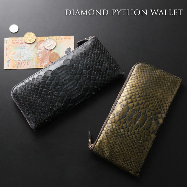 2. ダイヤモンドパイソン L字ファスナー 長財布 メンズ 本革 一枚革【訳あり】【ネコポスで送料無料】 4FC