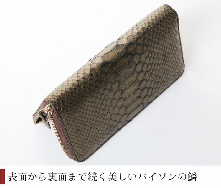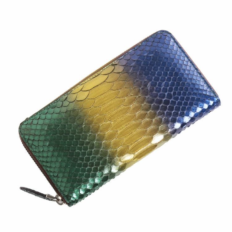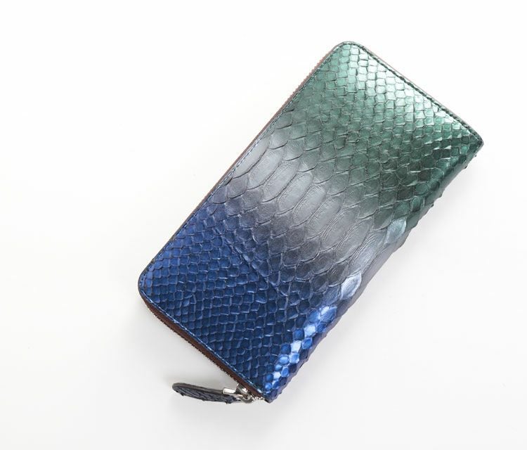 まるでアートのような美しい染色を施したパイソンのラウンドファスナー長財布。
