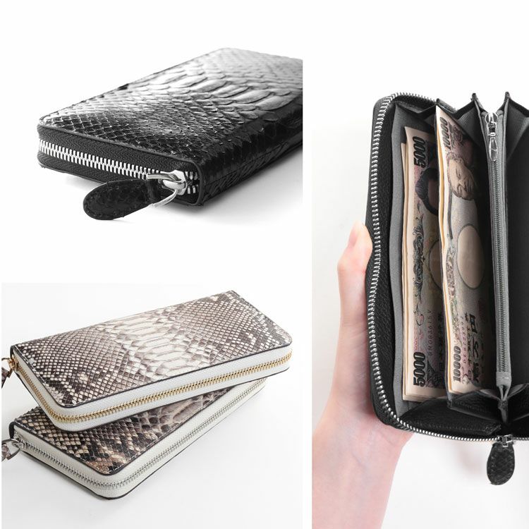 | 商品名:ダイヤモンドパイソン ラウンドファスナー 長財布 ノーカット |