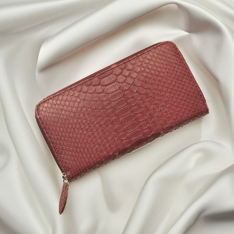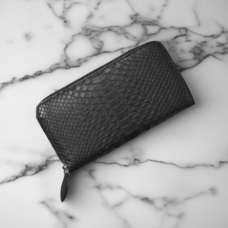 素材はエキゾチックレザーの代表、ダイヤモンドパイソンを継ぎ目のない美しい一枚革で使用。