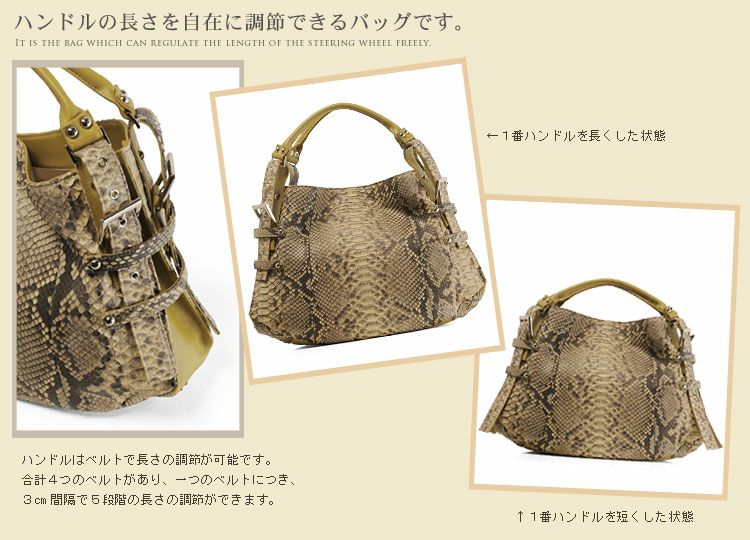 表地:ダイヤモンドパイソン、 (ハンドル、マチ、底面部分、合皮)
