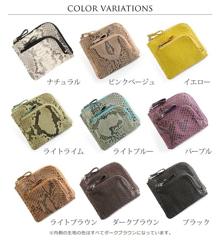 パイソンレザー ミニ財布 L字ファスナー 小銭入れ レディース コンパクト財布 コインケース 本革 蛇革【ネコポスで送料無料】 4FA