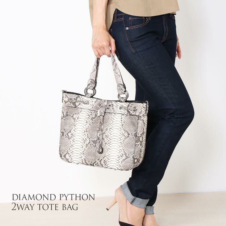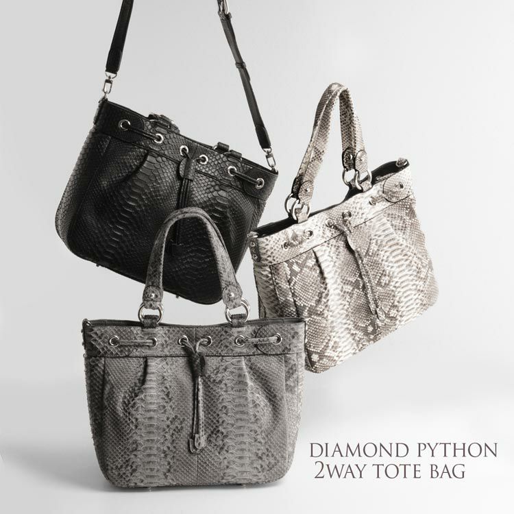 ダイヤモンドパイソンで仕立てた大きなトートバッグ。