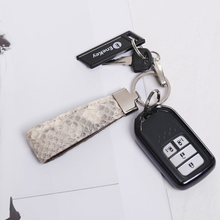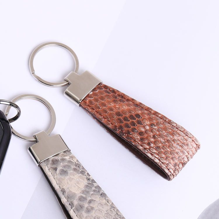 ダイヤモンドパイソンを使用した、日本製のキーホルダー。