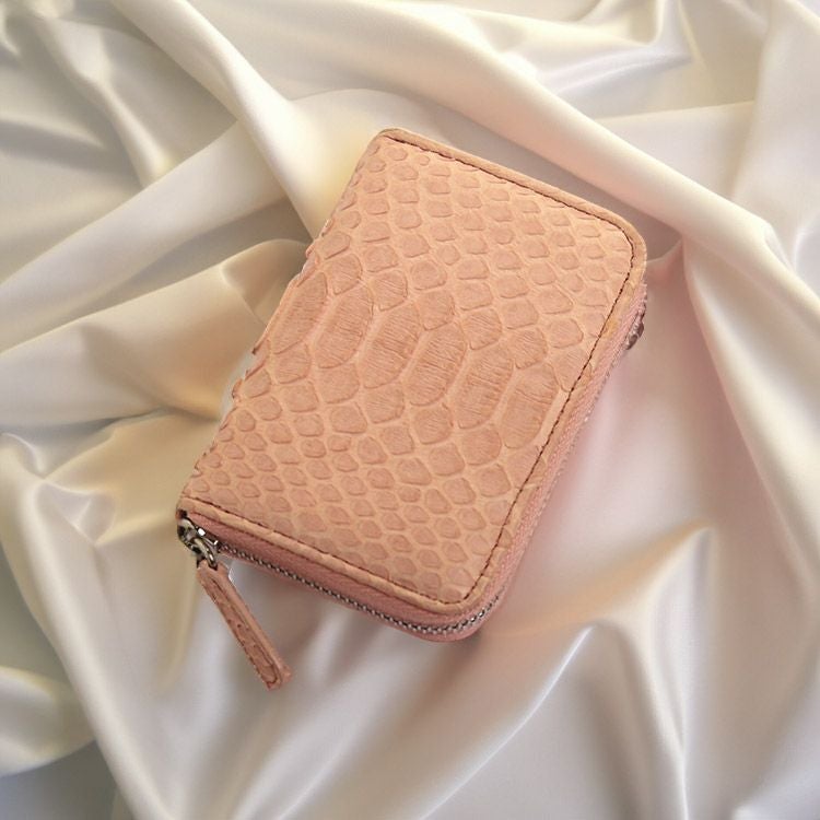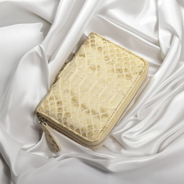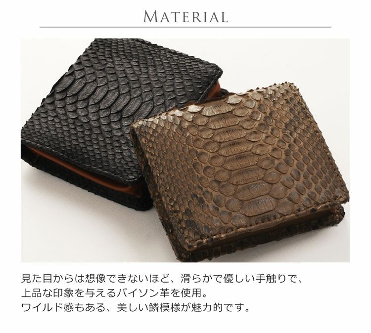 パイソンは、迫力ある表情からは想像できない、繊細で優しい手触りです。加工種類はあまり多くないパイソンですが、素材感を長く楽しむレザー本格派に人気のエキゾチックレザーとなります。スタイルにプラスするだけで、上品な華やかさを添えてくれるアイテムです。