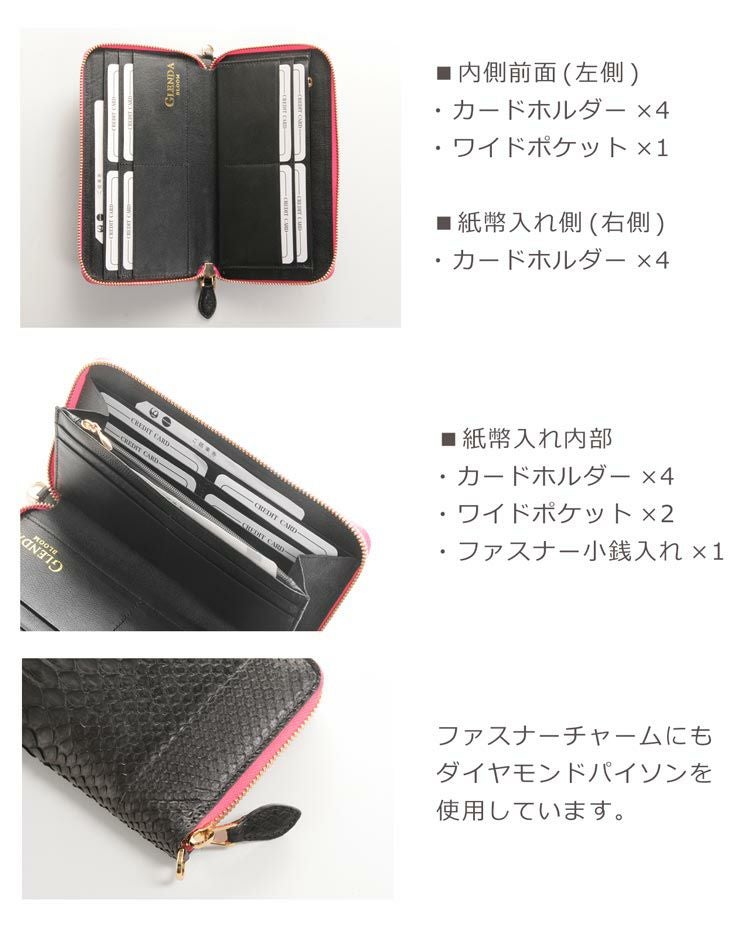 他の画像を見る exotic leather 内側にもパイソンを使用した、一枚革ダイヤモンド パイソン ラウンドファスナー長財布 レディース 4FA ¥ 19,800 税込 5.00 (10件) お気に入りに登録する