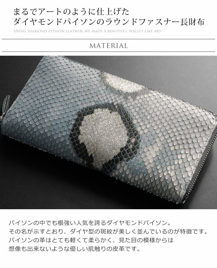 他の画像を見る exotic leather アートのように仕上げた スペインレザー ダイヤモンド パイソン ラウンドファスナー 長財布 全10色 4FA【ネコポスで送料無料】 ¥ 15,400 税込 在庫切れ (0件) お気に入りに登録する