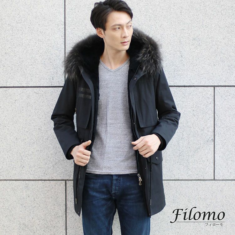 | 商品名:モッズコート フード付き ラクーン トリミング ファーライナー メンズ カーキ/ブラック |