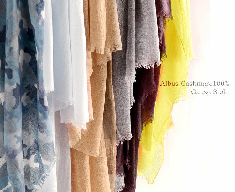 Filomo やさしい肌触りの 内モンゴル産 アルバス カシミヤ100% ガーゼ ストール 大判 7F