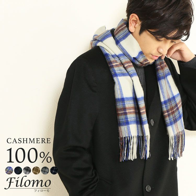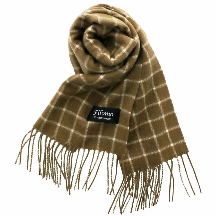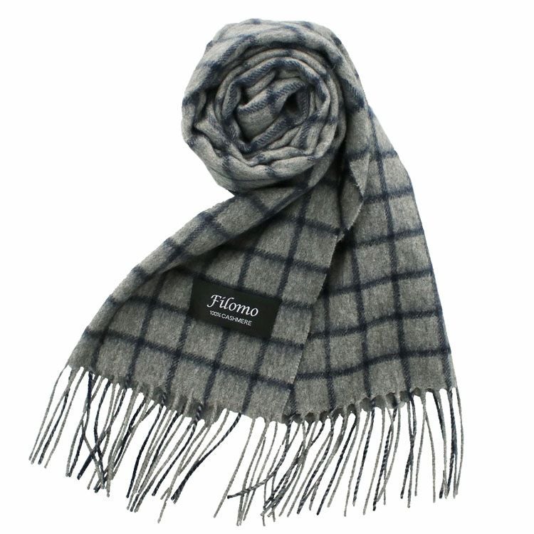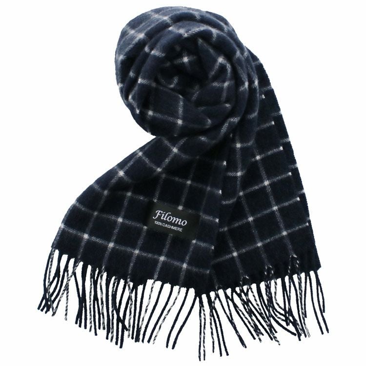 Filomo カシミヤ 100% チェック柄 マフラー ジャガード生地 【ネコポスで送料無料】 7F 【名入れ刺繍可能】